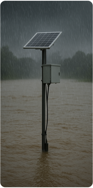 Box elektronik tahan cuaca (weatherproof) melindungi PCB, baterai, dan modul komunikasi dari hujan, panas, dan banjir.