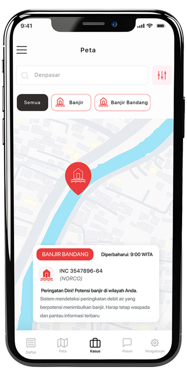 Notifikasi otomatis muncul di aplikasi ketika ketinggian air melewati ambang batas, memberi peringatan dini potensi banjir bandang, dan juga di kirim ke sirine tempat publik.